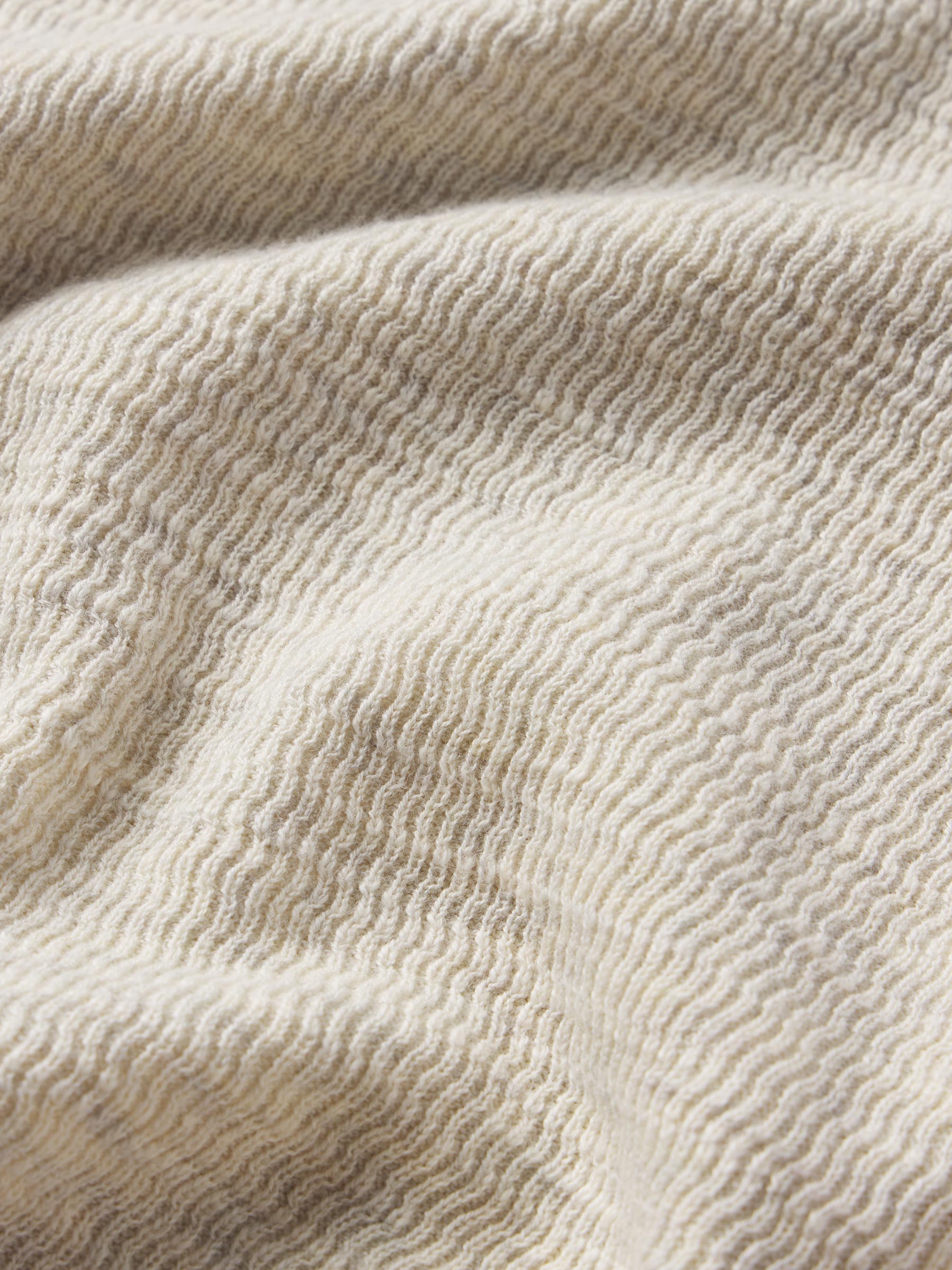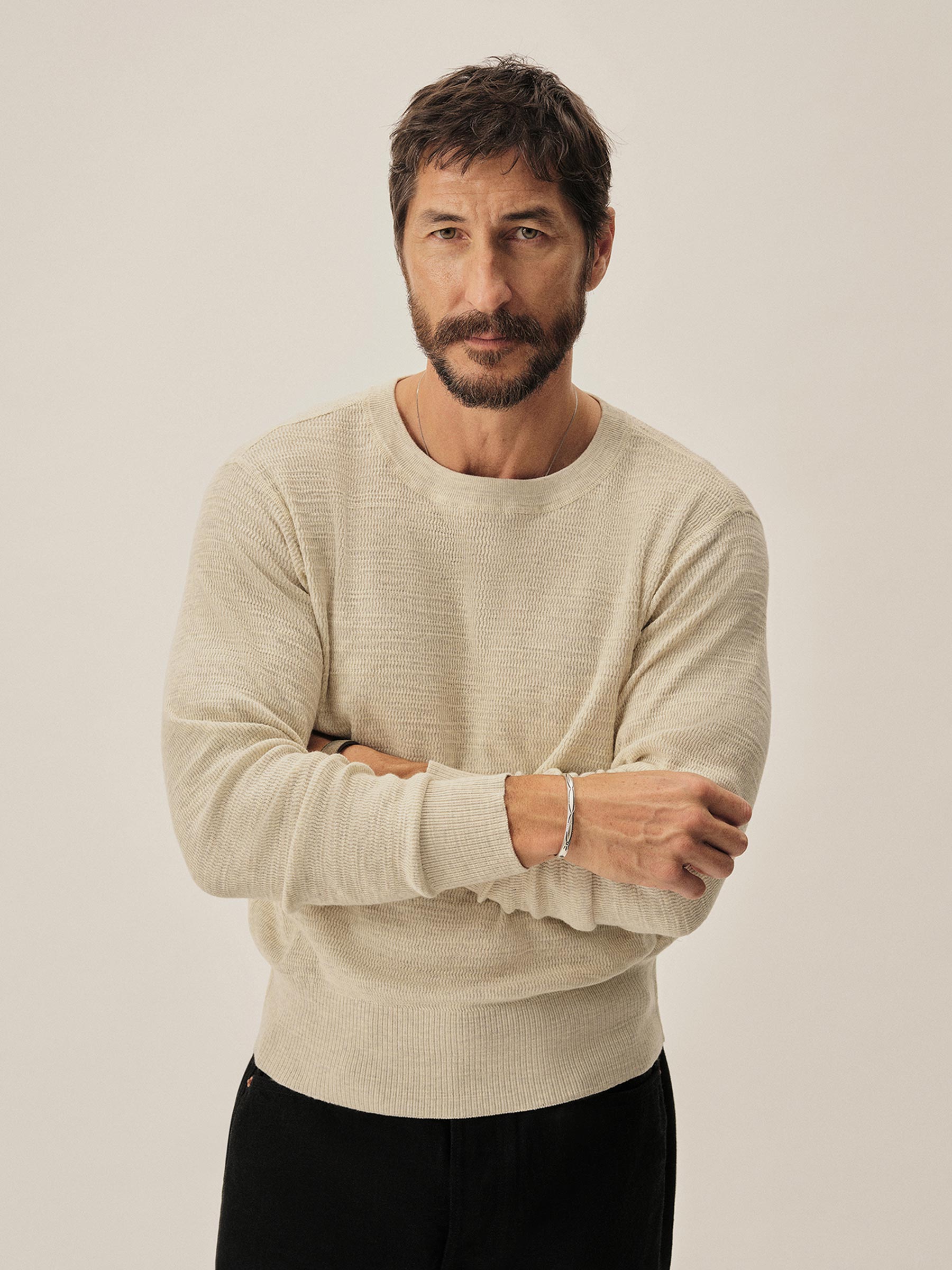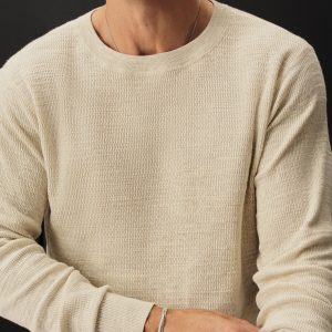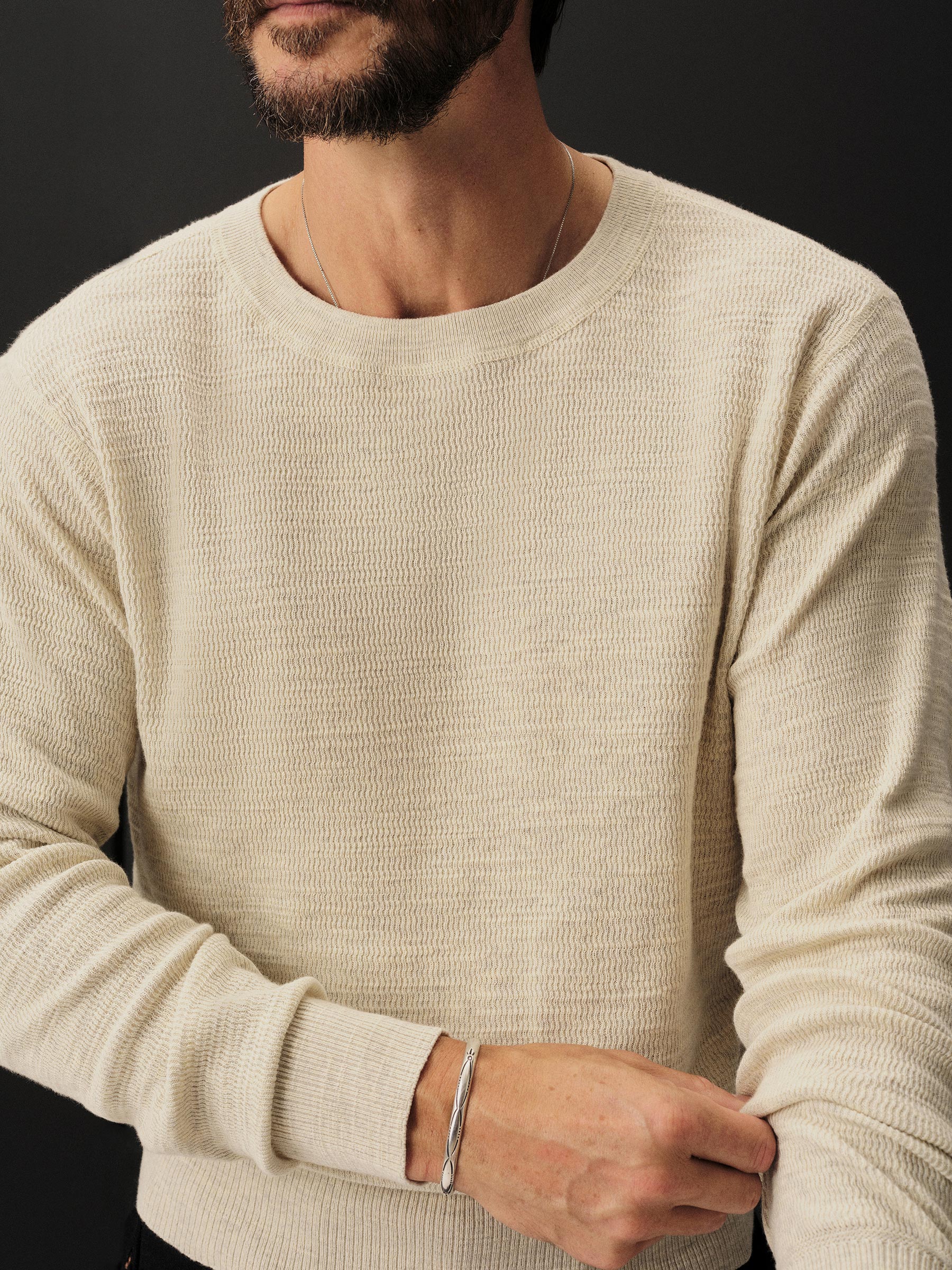 Inspired by WWII-era cut-and-sew thermals, this lightweight crew is knit from 100% slub cotton in a thermal stitch for breathable texture and vintage character. It’s finished with ribbing at the neck, cuffs, and hem, and yarn-dyed and garment-rinsed for a soft hand and broken-in feel.