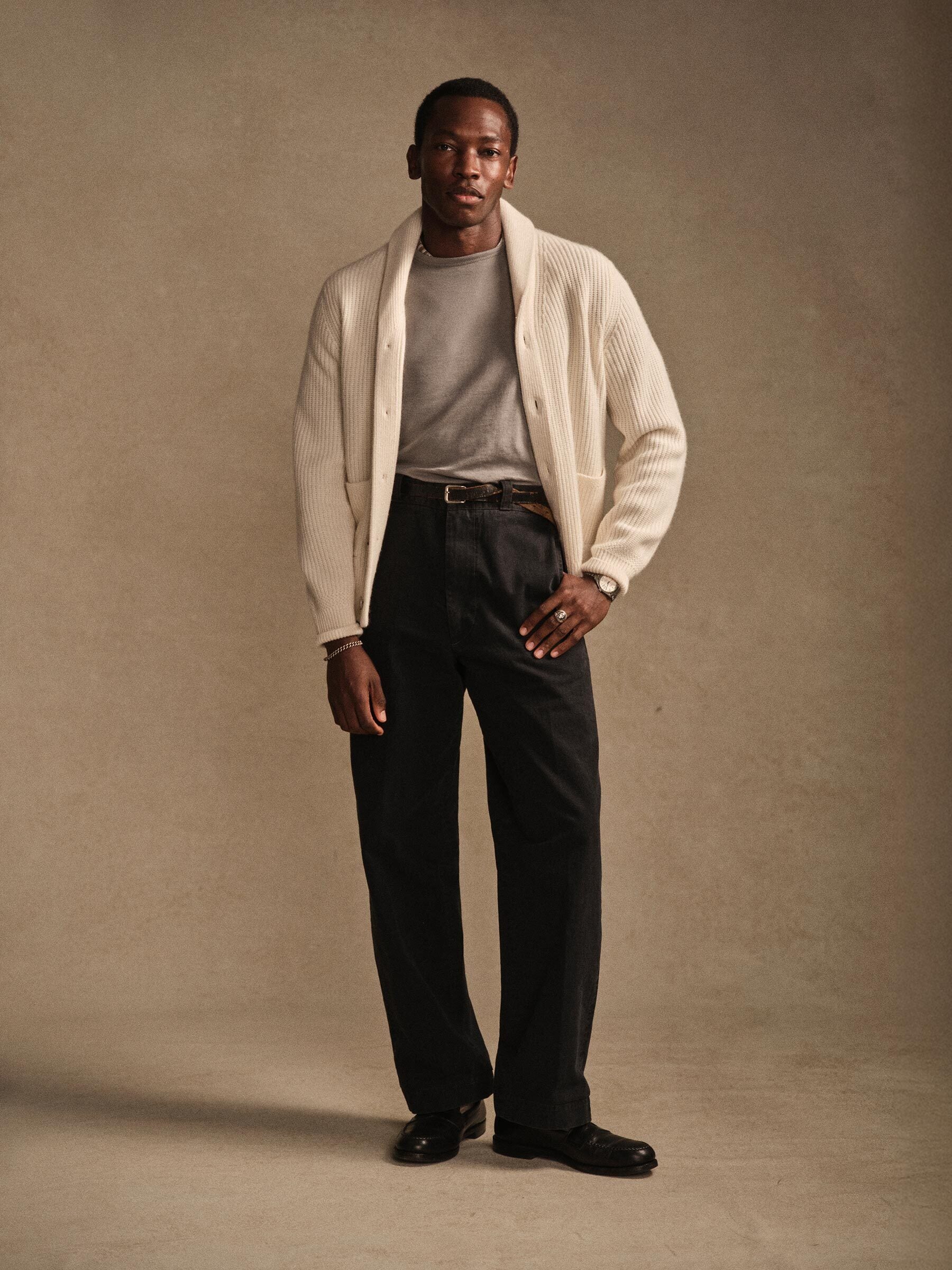 Inspired by 1960s military-issued chinos, an authentic period silhouette with a high rise, full top block, and a full leg. Cut from sulfur-dyed Japanese twill and constructed with busted seaming at the back rise, inseams, and outseams, along with tunnel belt loops and single-welt back pockets. Finished with corozo buttons, a Talon 42 zip, and a zip fly Stonewashed for a lived-in look and feel.