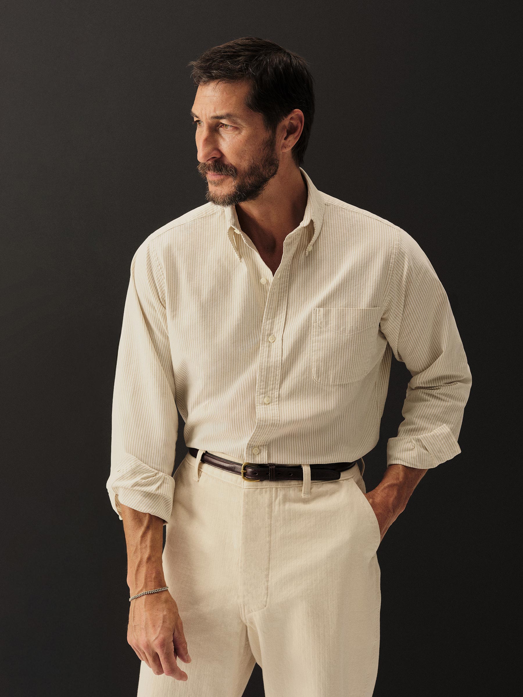 The Big Oxford is a subtle nod to vintage Ivy League tailoring with a gently oversized fit — referencing the proportions of archival American Oxfords. Built from 100% cotton in a 175 GSM heavyweight Oxford weave, using fine combed yarn in the warp and durable carded yarn in the weft. Finished with slightly thicker troca shell buttons.