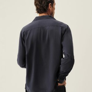 The Casita Camp Shirt channels the casual poise of 1950s and ’60s resort wear. Woven for warmer weather, the ultralight yarn-dyed Tencel brings a smooth, airy drape to cool summer nights. Designed with a period fit, a straight hem, side vents, and authentic details like a collar loop button fastener, patch-and-flap chest pockets, and real troca shell buttons. Finished with single-needle construction, a French placket, and a garment rinse for a soft, lived-in feel.