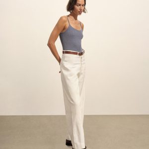 Slim fit, vintage-inspired camisole crafted from a delicate blend of Italian cotton and linen. Constructed from a structured 4×2 rib with a textured hand and a touch of stretch. Garment washed for vintage look and feel.