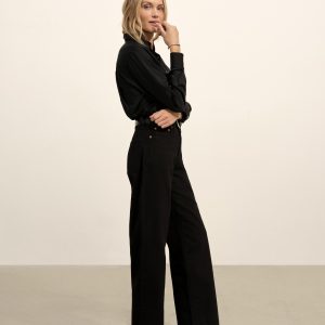A silky, mid-century-inspired Western shirt with a relaxed body, distinct sawtooth pockets, and an arched back yoke with pleats. Cut from rayon modal and finished with French seams and pearl snaps.