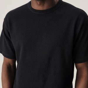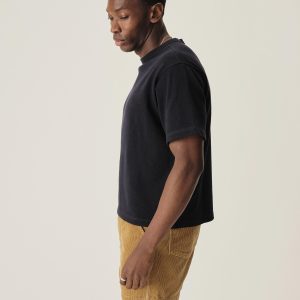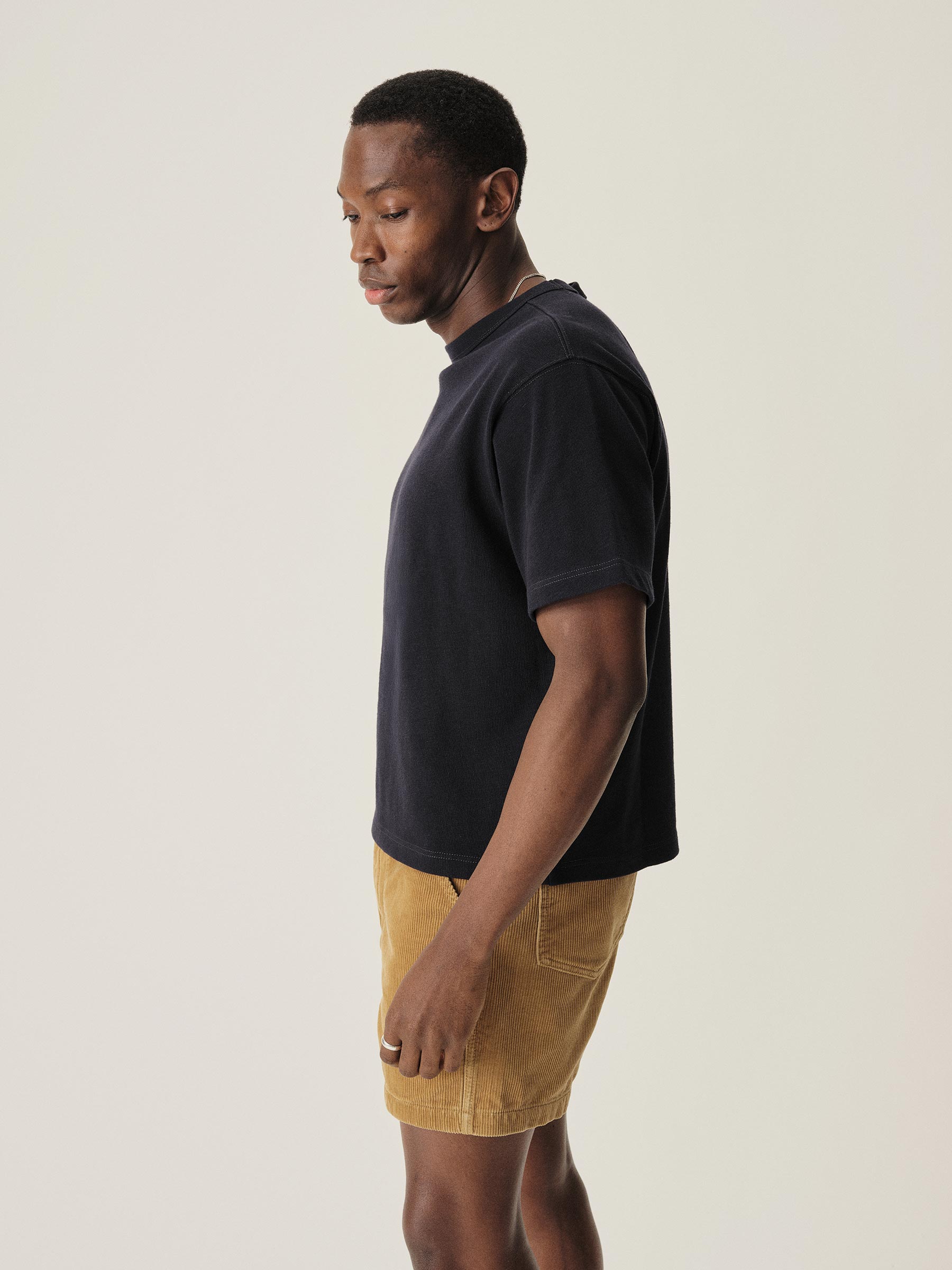 Cut from a substantial and soft, 310 GSM cotton jersey, this 90s-inspired boxy crewneck tee has a straight hemline, longer sleeves that hit lower on the bicep, and a wide-ribbed collar. It features a bound neck with a woven label, and is constructed with a split-needle cover stitch at the shoulders and armholes. Double-washed for a soft, smooth texture and a consistent fit.