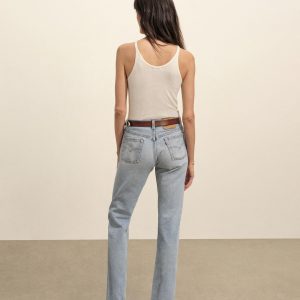 Slim-fit, vintage-inspired scoop tank made from a blend of 60% recycled cotton and 40% cotton. Featuring a combo of jersey fabric and scallop stitch details at the armholes and neckline, it also includes baby snaps for the bra holder.