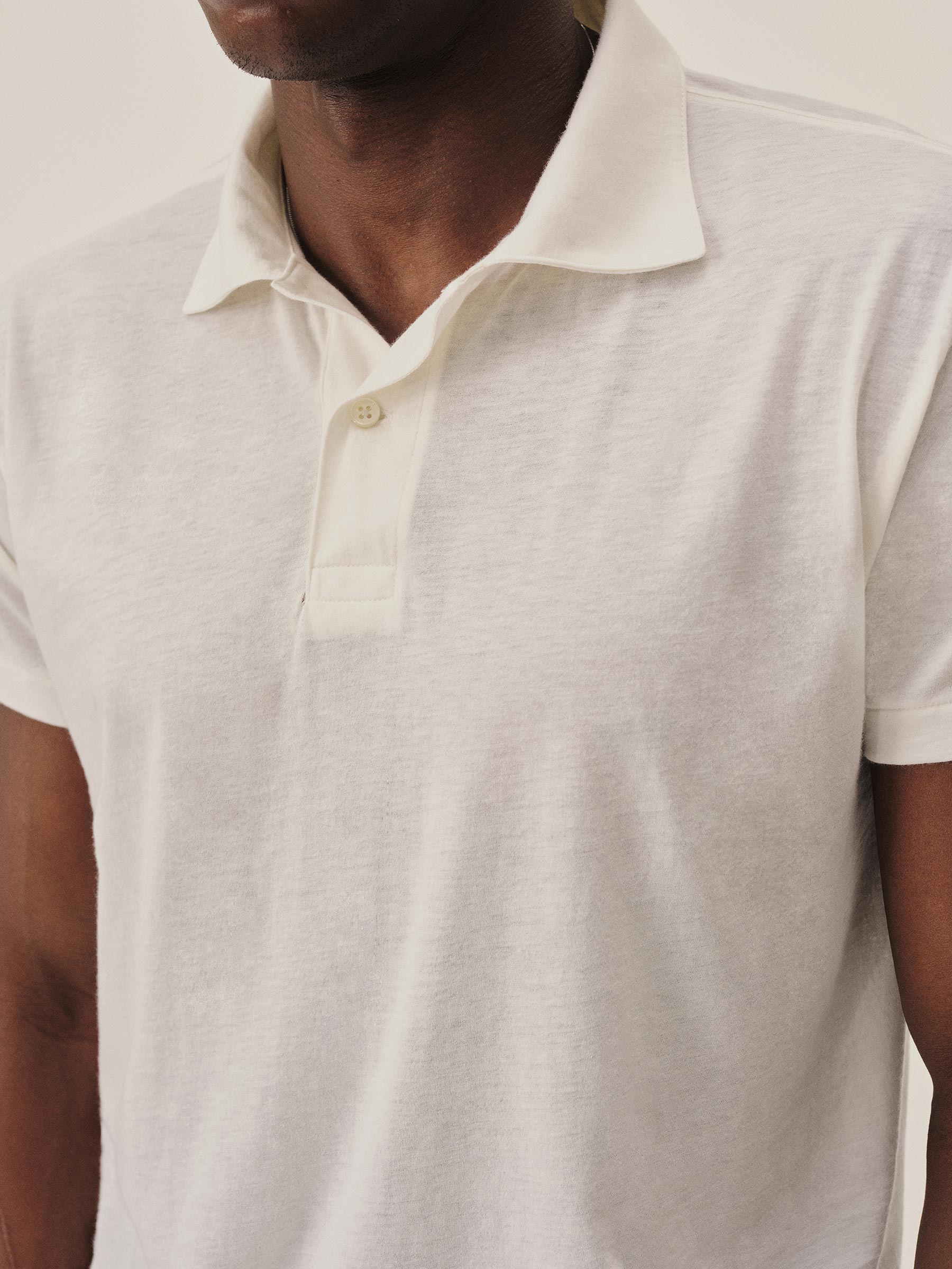 A short sleeve polo knit in Japan from a blend of cotton and cashmere — delivering a refined, ultra-lightweight feel at just 100 GSM. Piece-dyed for rich color and finished with genuine troca shell buttons, it’s designed with a slightly shortened body and a touch of extra room in the chest for ease and movement.