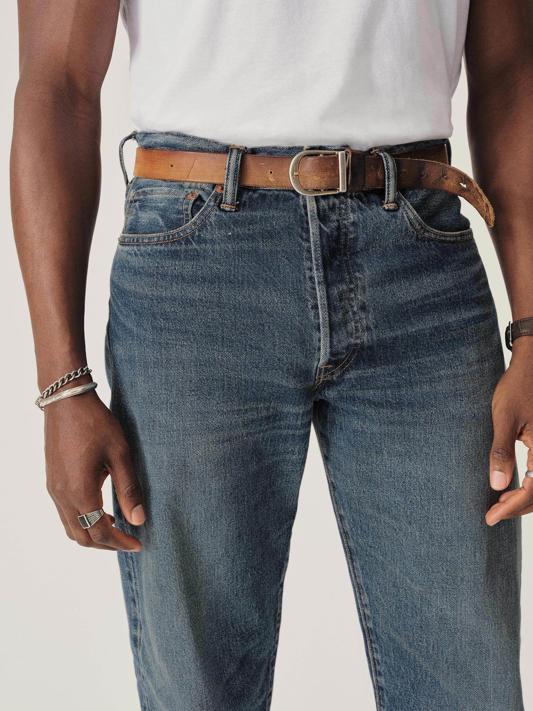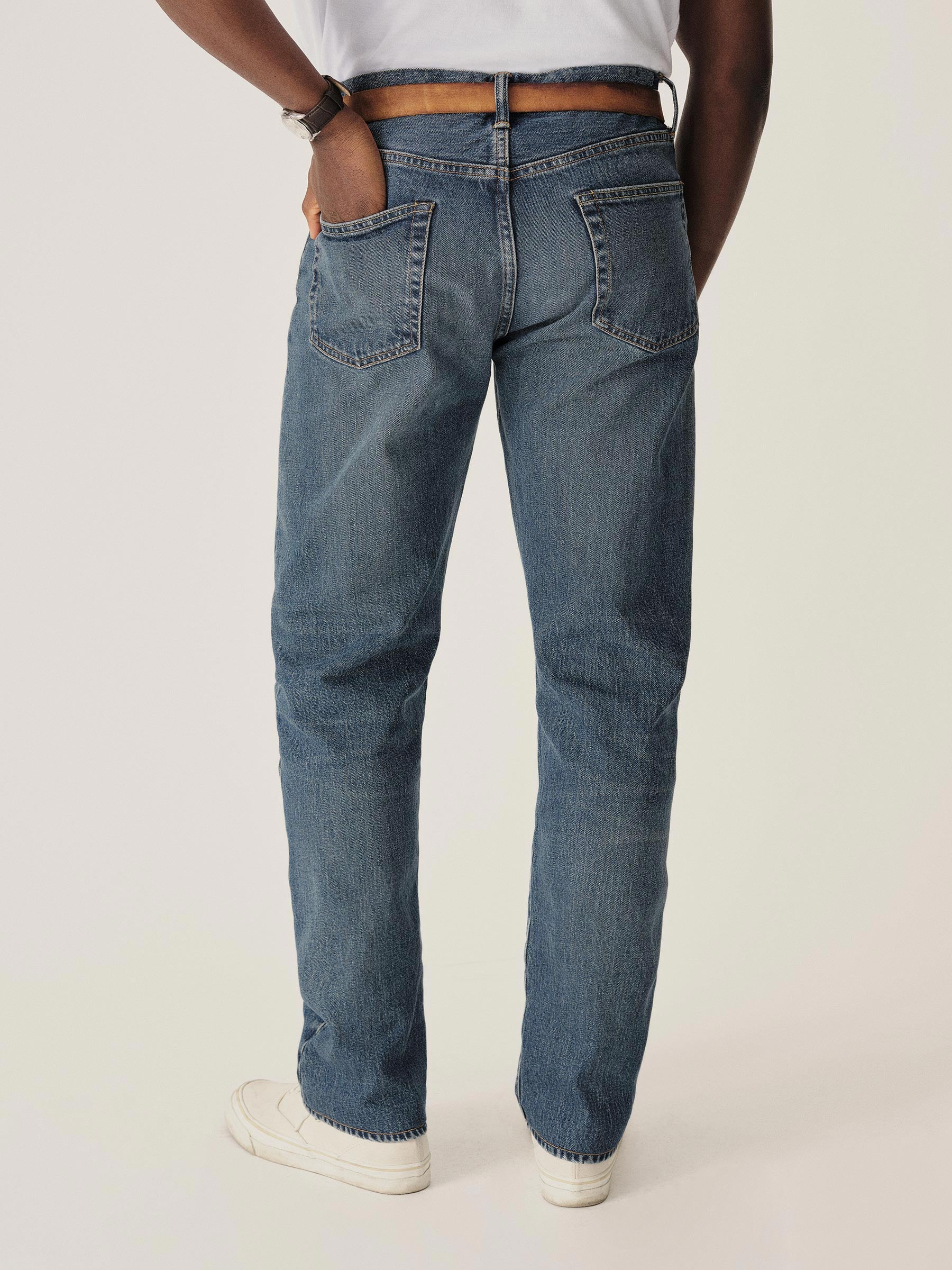 A classic 5-pocket jean in our Ford Standard fit: mid-rise, straight through the thighs with a taper below the knee. Inspired by our favorite vintage jeans, this 14 oz denim from Japan-based Kaihara mills has a hint of stretch and an organic texture that develops more character with every wear. Garment rinsed for a lived-in feel. Details include copper rivets and a metal tack button fly.