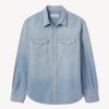 Distinct from single-point Western shirts, the sawtooth pocket style gets its name from the unique, double-point pocket flaps made popular in the 1950s. Cut in a comfortable, classic silhouette, our version is built from 100% cotton Japanese denim twill and features curved front yokes, a curved double-point back yoke, and Japanese U-rim pearl snaps. Fabric will crock/transfer indigo during intial wear- to subside as patina develops.
