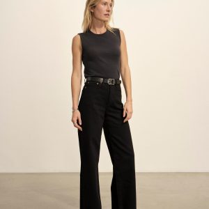Made from a midweight denim, these are classic five pocket jeans with all the right details – copper rivets, metal tack button waistband, and a button fly. Cut in a generous 11.5″ high rise and wide leg fit with a 32″ inseam, these jeans have been washed for a lived in feel.