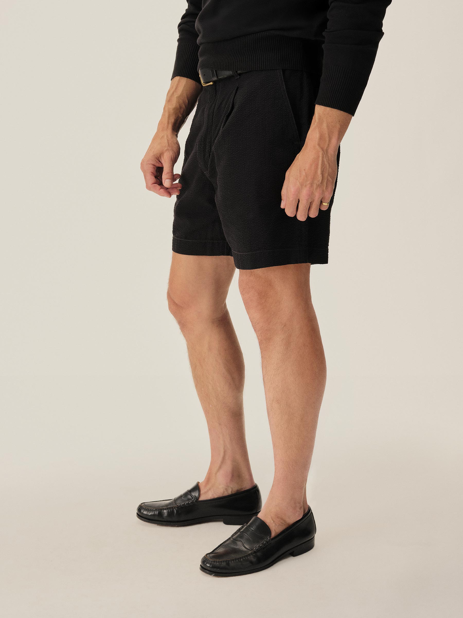 A single-pleat short named after the Parisian tailor who popularized pleated pants in the early 20th century. Cut in a relaxed, classic fit with a high rise, the single reverse pleat adds volume for a more comfortable silhouette. Made from 100% Japanese cotton herringbone. Features include two front slash pockets, two welt back pockets, and a buttoned coin pocket. 6” inseam. Washed for a lived-in feel.