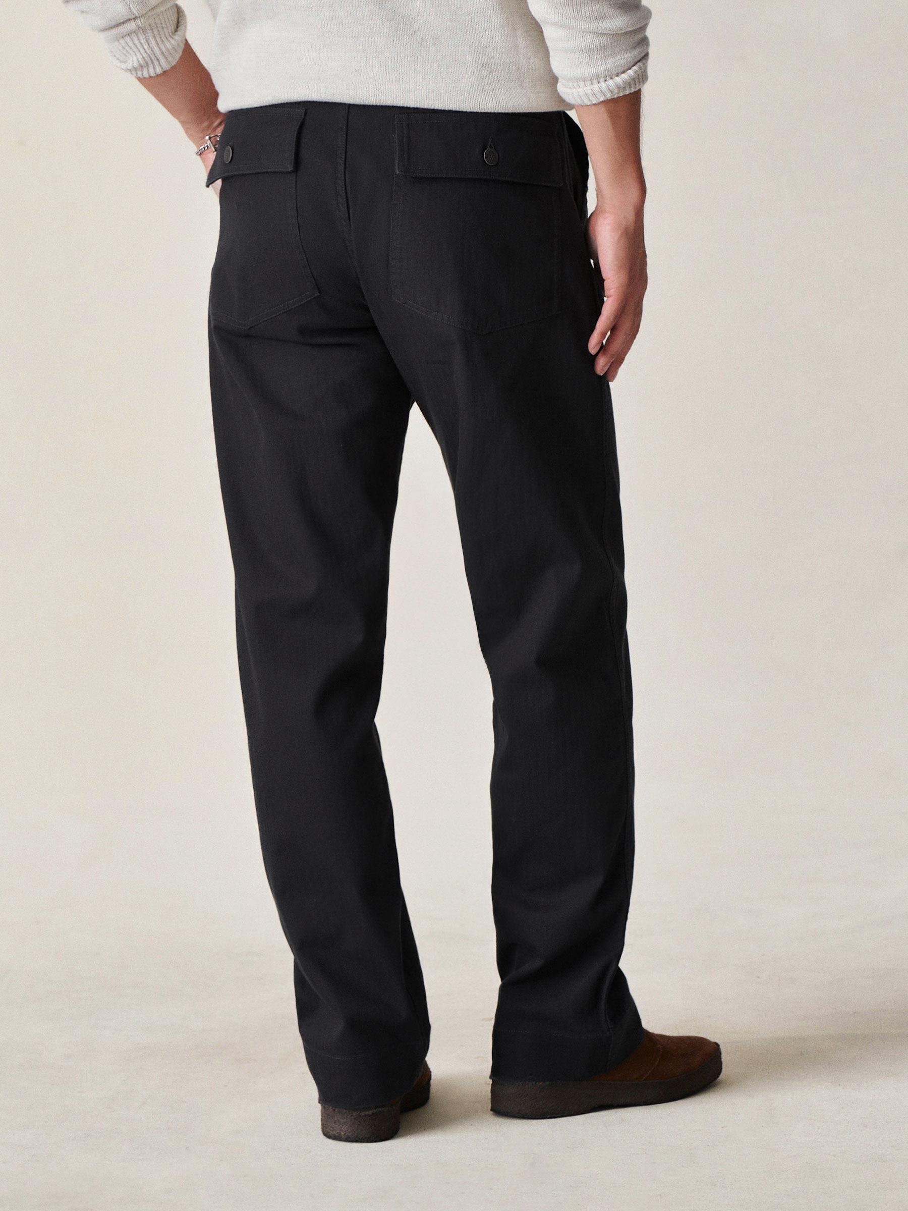 Our homage to WW2-era military style fatigues, cut in a true-to-original relaxed fit with a slightly higher rise and straight leg. This lightly structured 9.4 oz.cotton twill has a herringbone weave and has been garment washed for a lived-in feel. Features a Hollywood waistband, felled seams, patch and flap back pockets, and 13-star tack buttons — all true to the original WW2 model.