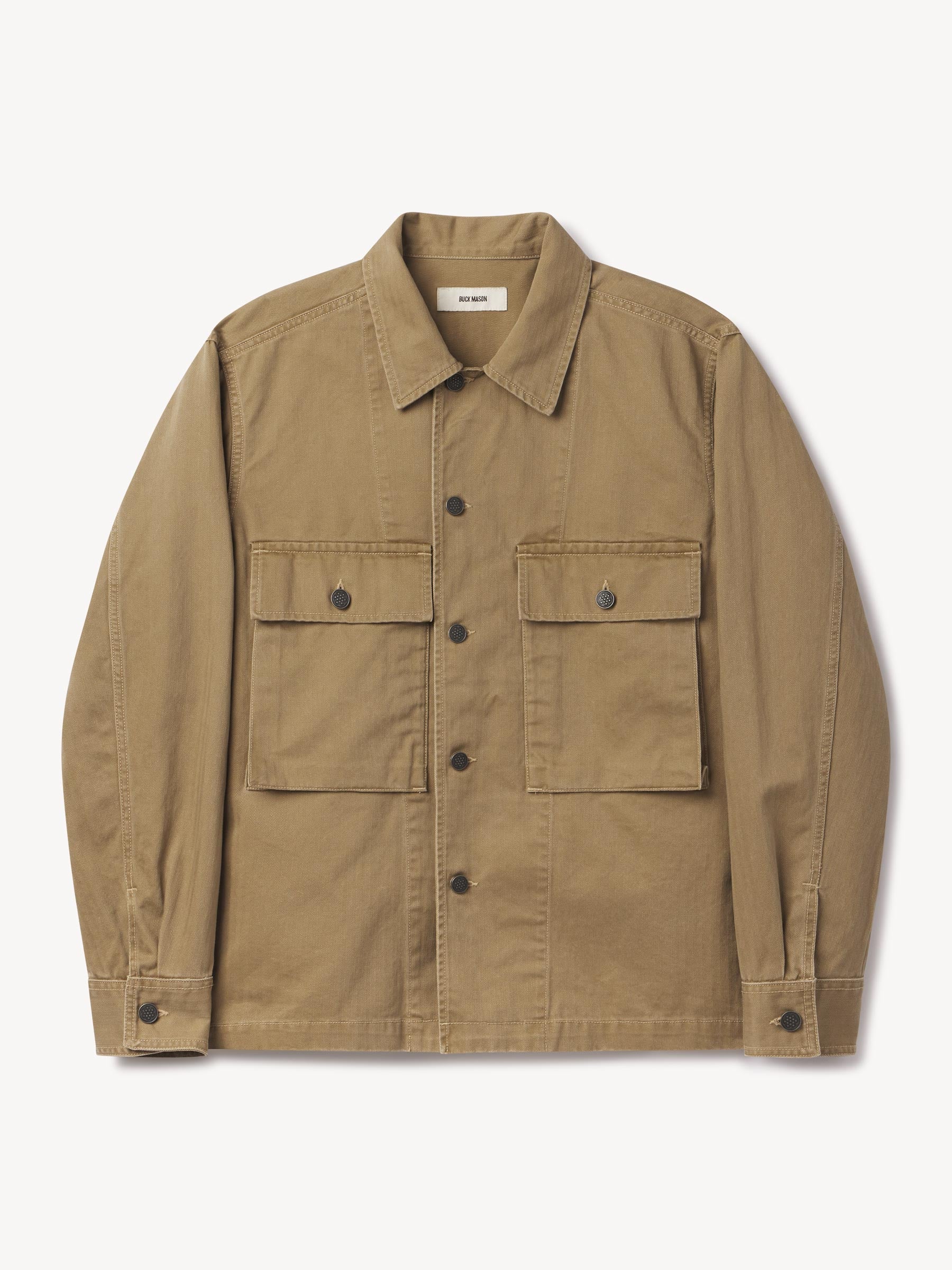 Our homage to WW2-era military style fatigues, cut in a true-to-original relaxed fit designed for range of motion with room to layer underneath. This lightly structured 9.4 oz.cotton twill has a herringbone weave and has been garment washed for a lived-in feel. Features two large bellows front pockets, a back yoke panel for mobility, felled seams, button-front closure, single-button cuffs, and 13-star tack buttons — all inspired by the original WW2 model.