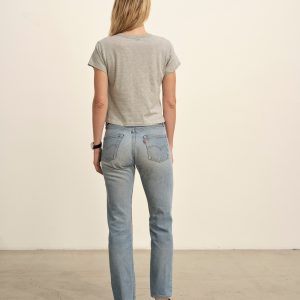 Boxy short sleeve crewneck tee with a straight hem. Cut from 120 GSM Supima cotton. Constructed with rib neck binding and double-needle cover-stitching at the hem. Garment washed for a lived-in feel.