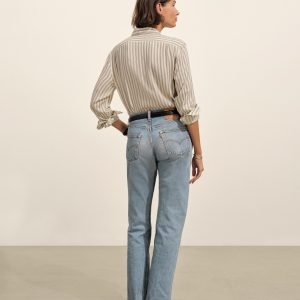 A modern take on men’s sportswear shirts from the 1940s, a relaxed button-down shirt in a silky rayon jacquard weave. Featuring a carved collar, side-seam gussets, button-through plackets along shirt front and sleeves, and pintuck detailing on back yoke and sleeve cuffs. Finished with side-seam gussets and mother of pearl buttons.