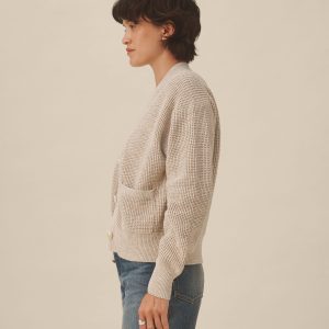1960s inspired crewneck sweater with an easy, slim fit. Crafted from 7-gauge waffle knit yarn-dyed cotton with a light slub texture, featuring fashioning at the neck and drop-back shoulders as a nod to mid-century.
