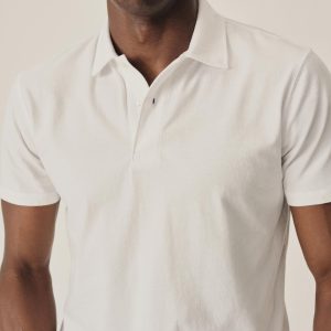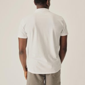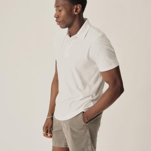 Slim fit polo shirt cut from 145 GSM cotton jersey that’s been sueded for softness. Features a two-button mitered placket and a straight hem. Garment washed for a lived-in feel.