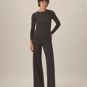 Slim fit ribbed long sleeve tee cut from 295 GSM stretch cotton that holds its shape. 2×2 rib structure—two rows of rib stitch, two rows of jersey stitch—is offset by contrast 1×1 rib at the neck. Constructed with coverstitching throughout and flatlock stitching at the side seams. Garment washed for a lived-in feel.