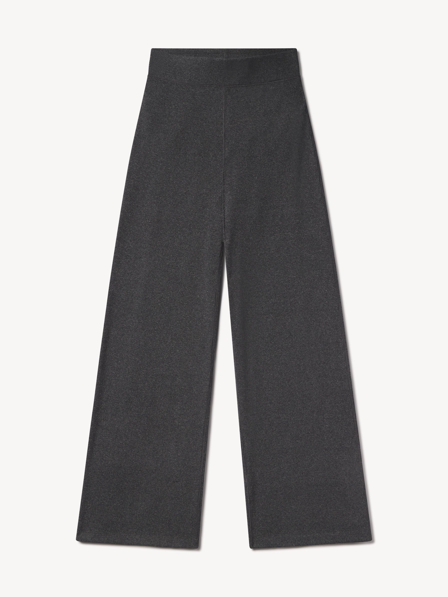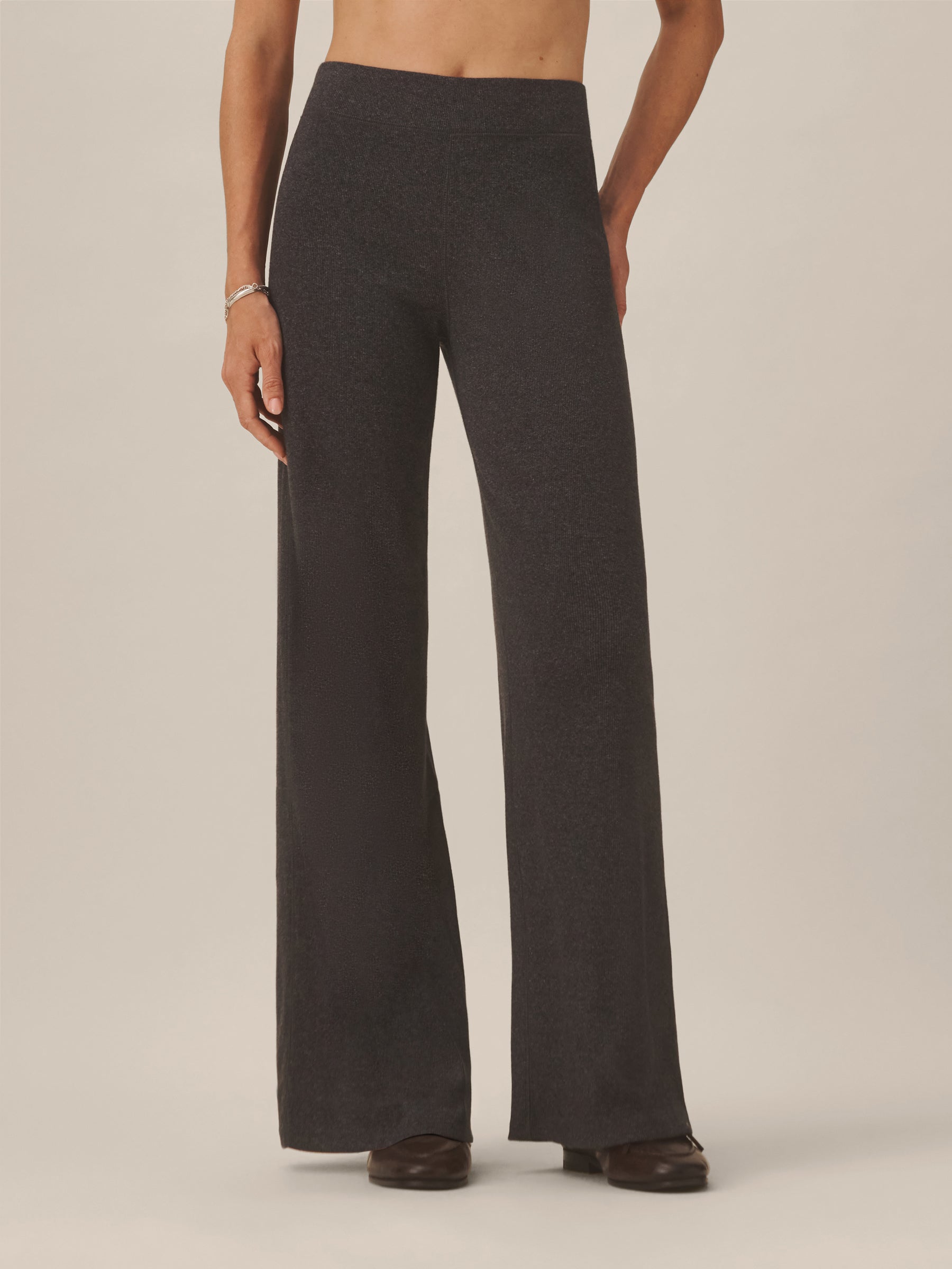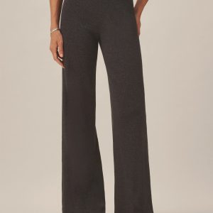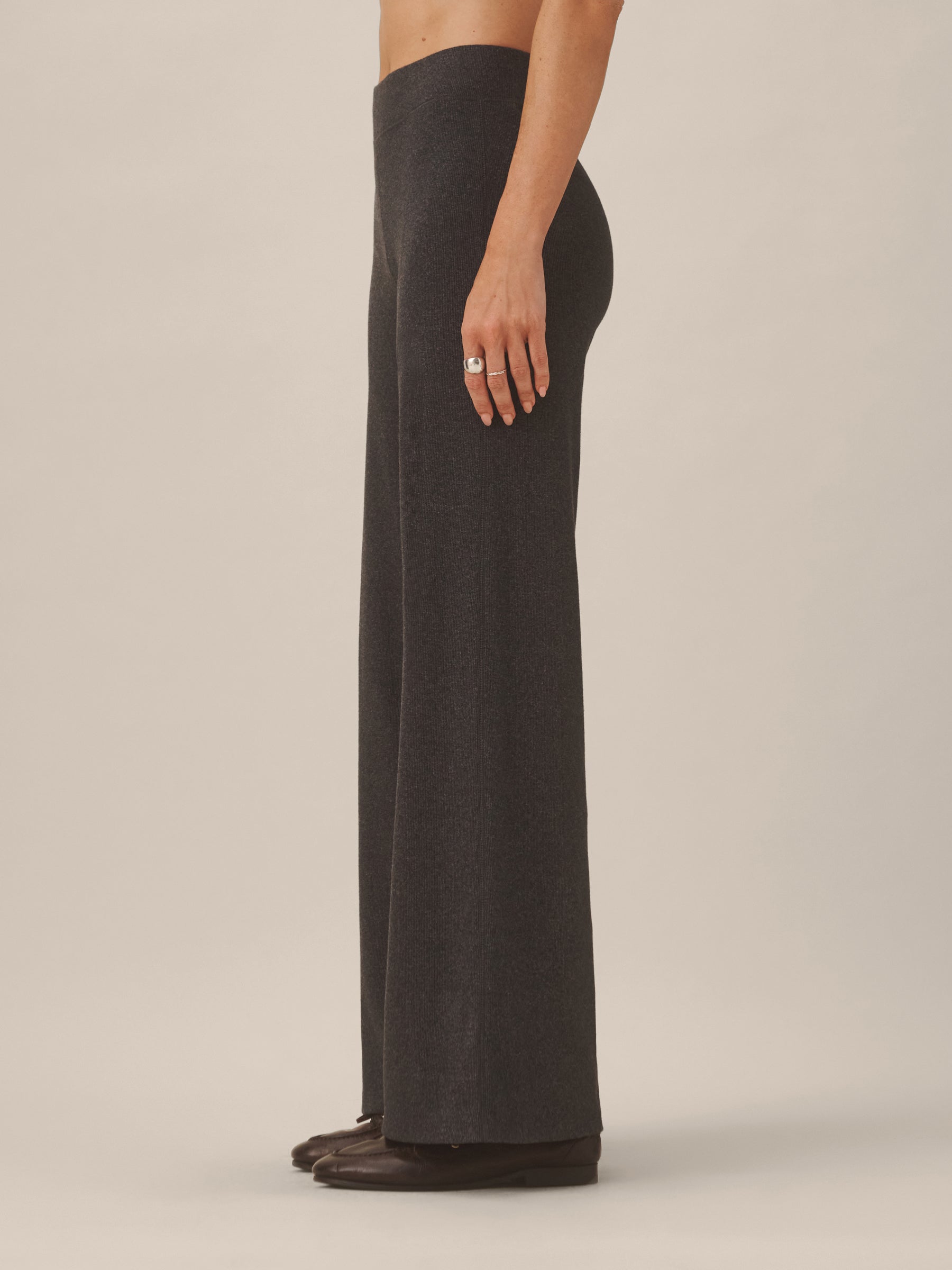 Straight leg, high-waisted 2×2 rib knit pant cut from 295 GSM stretch cotton that holds it shape. Fits comfortably at the waist with a wide elastic waistband with a full length inseam measuring 31 3/4”. Garment washed for a lived-in feel.