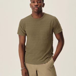 A classic fit tee in a fine knit drop-needle rib construction. Made from 12 gauge yarn-dyed hemp/cotton blend that wicks moisture and breathes easily. Chest pocket with ribbed opening. Finished with a 1×1 rib at collar, cuffs and waistband. A versatile summer layer inspired by vintage rib tees.